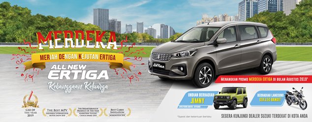 Dalam semarak program MERDEKA, selama Agustus sampai September 2019, pelanggan Suzuki yang membeli All New Ertiga berkesempatan memenangkan undian berhadiah satu unit mobil legendaris Suzuki Jimny.