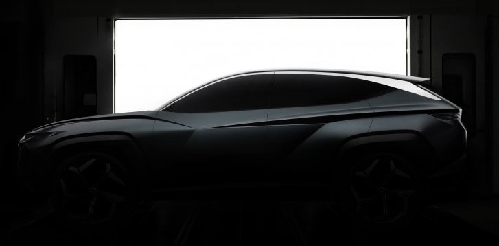 Dalam siluet foto itu terlihat sebuah crossover dengan grille besar khas Hyundai. Pilar C mobil itu melandai ke belakang yang memberikan kesan sport, ditambah roda-roda berukuran besar dan garis-garis otot pada bodi yang lurus ke belakang.