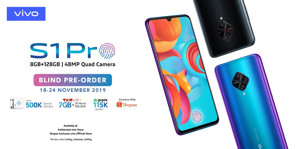 Selama periode Blind Pre-Order ini, konsumen dapat memesan Vivo S1 Pro di Shopee dengan cara membeli voucher khusus seharga Rp100.000 yang selanjutnya dapat ditukarkan dengan benefit senilai Rp400.000 dalam bentuk Shopee Coin, serta hadiah tambahan seperti speaker JBL, gratis berlangganan Joox selama satu bulan, juga voucher Gojek senilai Rp115.000 berlaku untuk GoPay, GoGames, dan GoPlay.