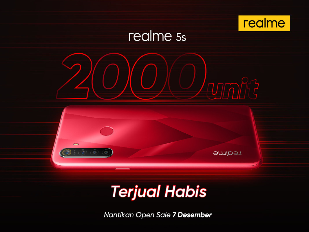 "Kedua smartphone ini ternyata diterima dengan baik oleh pecinta gadget di Indonesia, di mana realme 5s terjual habis sebanyak 2.000 unit di Lazada dan Realme X2 Pro dipesan sebanyak 5.000 unit hingga hari terakhir masa pre-order di Blibli.com pada hari ini," lanjut Palson Yi.