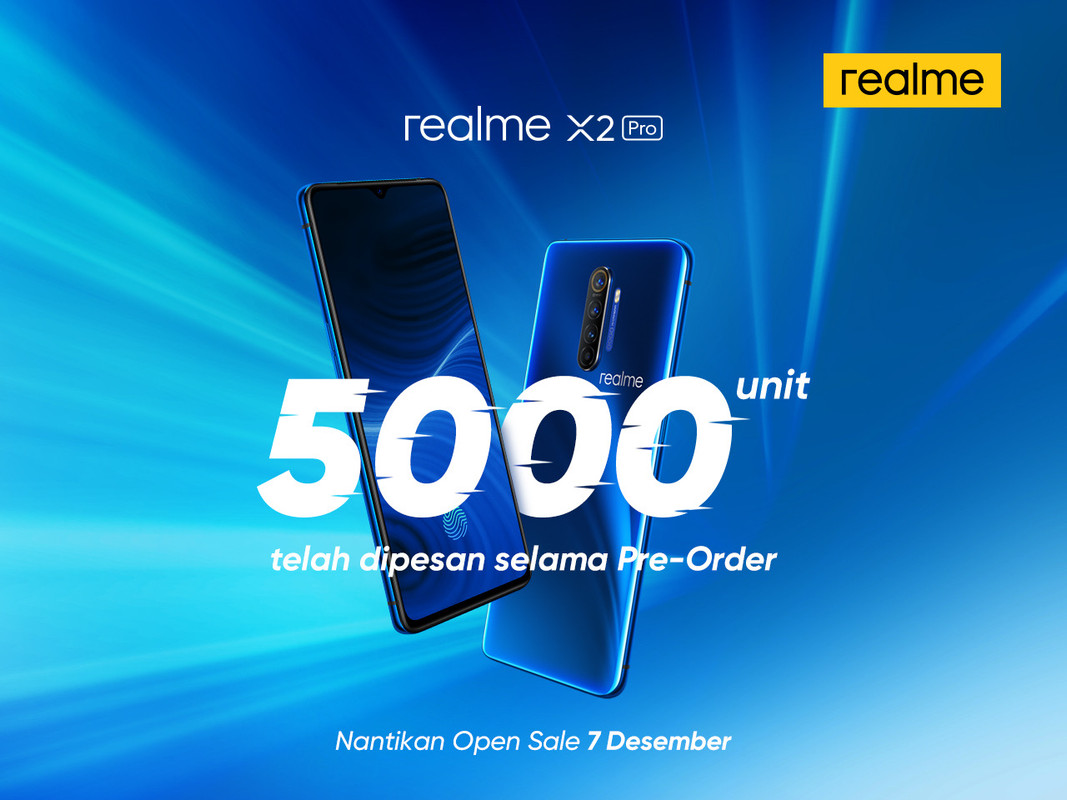 Setelah mengadakan pre-order online yang dimulai satu hari setelah hari peluncurannya hingga 3 Desember di Blibli.com, Realme X2 Pro telah dipesan sebanyak 5.000 unit.