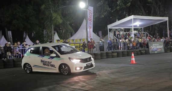 Para peserta ditantang untuk melintasi track dan melakukan manuver melewati berbagai rintangan dengan menggunakan Honda Brio miliknya sendiri.