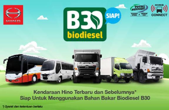 "Hino Indonesia siap menghadapi program Pemerintah untuk penggunaan bahan bakar biodiesel B30 sesuai yang tertuang pada Peraturan Menteri (Perman) Energi dan Sumber Daya Mineral (PESDM) No 12 tahun 2015 tentang Penyediaan, Pemanfaatan dan Tata Niaga Bahan Bakar Nabati (Biofuel) Sebagai Bahan Bakar lain," ujar Santiko Wardoyo, Direktur Penjualan dan Promosi HMSI, dalam keterangan tertulisnya.